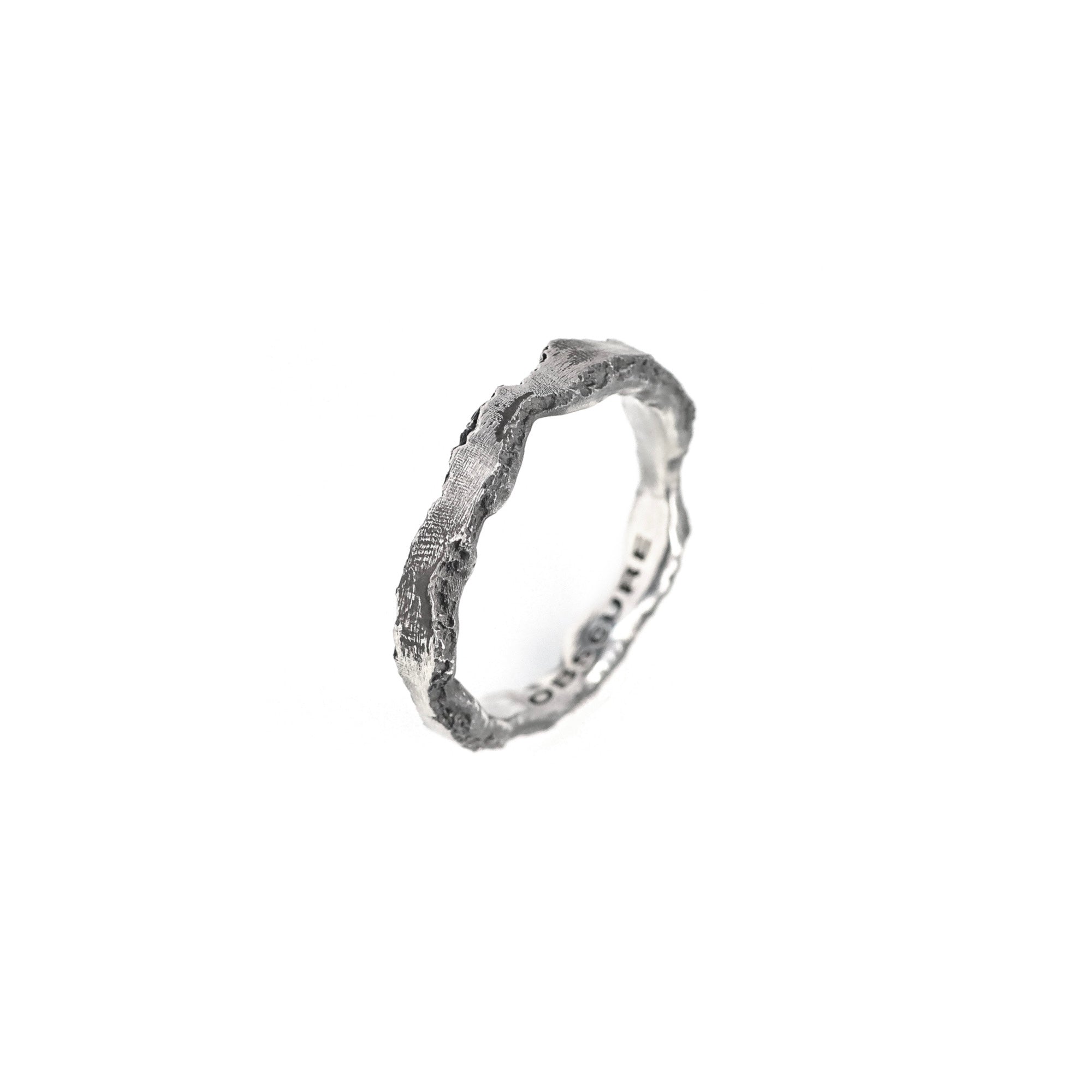 A DISTRESSED STERLING SILVER BAND, CRAFTED FOR EFFORTLESS STACKING OR SOLITARY WEAR. ITS SIMPLICITY CARRIES QUIET TENSION — RAW YET REFINED. EACH PIECE IS FORGED WITH INTENTION, EMBODYING SUBTLE DECAY AS A SYMBOL OF TIME AND PERMANENCE.